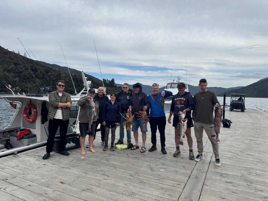 By Thursday night we had got a large portion of the work done and Friday forecast was very good. It was also Alison’s birthday, so she opted for a walk on Queen Charlotte track to Furneaux Lodge while Southern cross took a crew diving, Leo took a crew fishing. Both were successful and we enjoyed a beer or two at Furneaux lodge rendezvous that afternoon.